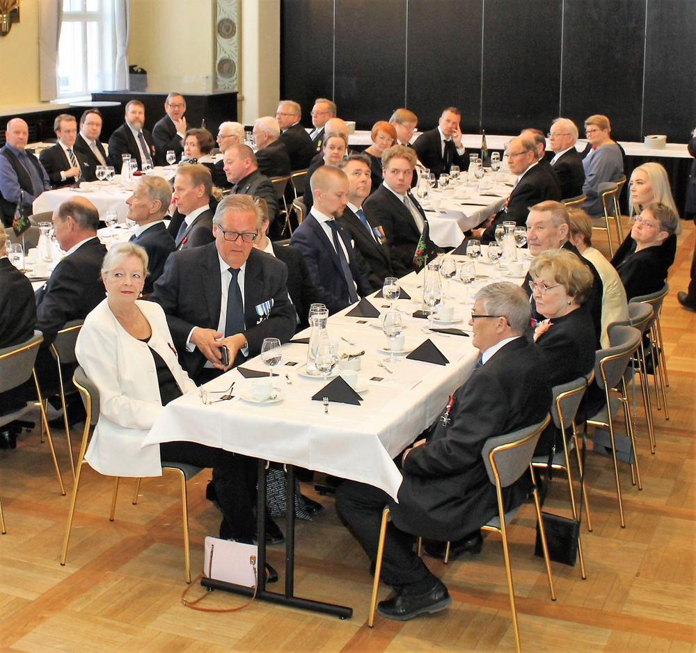 AKS:n Perinneyhdistyksen varapuheenjohtaja, teologian tohtori Ermo Äikään läsnäolijoita kannustavat juhlasanat, jotka hän lausui pastori Elias Simojoen aikanaan vihkimästä lipustamme ja lipullemme kohottaen maljan isänmaalle, painuivat sydämiin ja loivat osaltaan turvallisen, lämpimän yhteenkuuluvaisuuden tunteen. Onnellisuuden ja oikeutetun tyytyväisyyden kyyneliä nähtiin useissa silmäkulmissa.