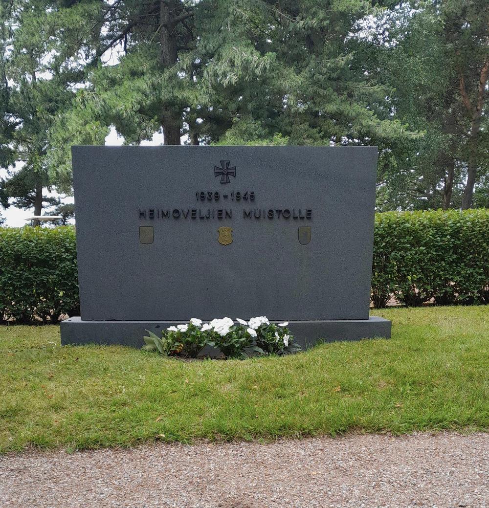 Heimoveljien, eli sodissamme 1939-1945 Suomen asevoimissa taistelleiden itä-karjalaisten ja inkeriläisten sekä virolaisten vapaaehtoisten muistolle paljastettiin muistomerkki Hietaniemen hautausmaan sankarihauta-alueella 1992. Kivi oli vuosien aikana kallistunut pahasti ja sen pinta oli kovin likainen.