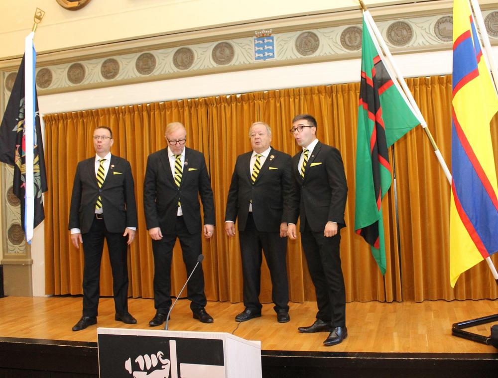 Seppelepartiossa veteraanijärjestöjen edustajana Sakari Martimo, Vapaussodan Perinneliiton puheenjohtaja Jouni Koskela ja AKS:n Perinneyhdistyksen hallituksesta majuri Ville-Veikko Kirvesmies. Toisen seppeleen laski Suomen-poikien perinneyhdistyksen puolesta yhdistyksen sihteeri Antti Moisio.