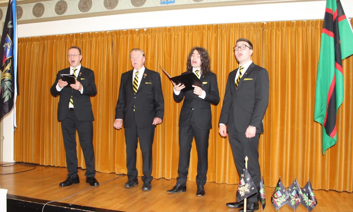 AKS:n varapuheenjohtaja Ermo Äikään päätössanojen jälkeen koko toistasatapäinen juhlayleisö kajautti tilaisuuden lopuksi Viipurin lauluveikkojen kvartetin ja kapelimestari Ilkka Aunun johdolla Karjalaisten laulun.