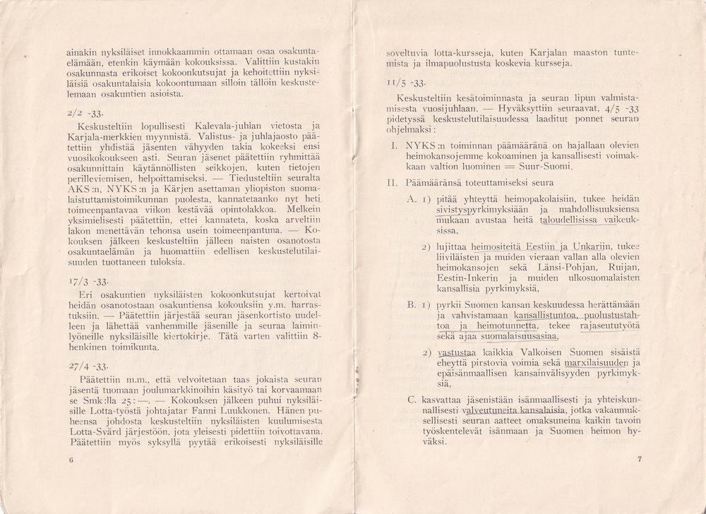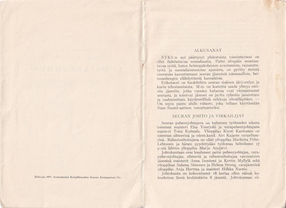 Naisylioppilaiden Karjala-Seuran vuosikertomus X/1932 - X/1933