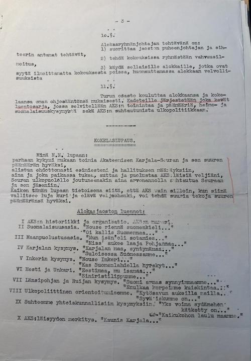 Akateemisen Karjala-Seuran Alokasohjesääntö vuodelta 1934