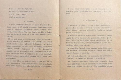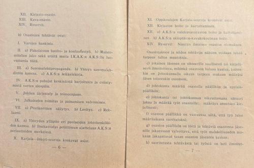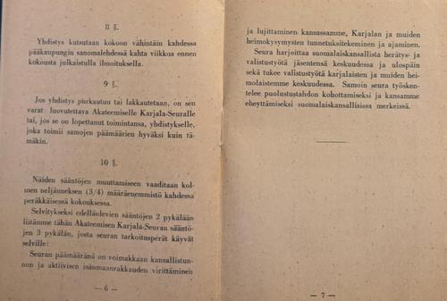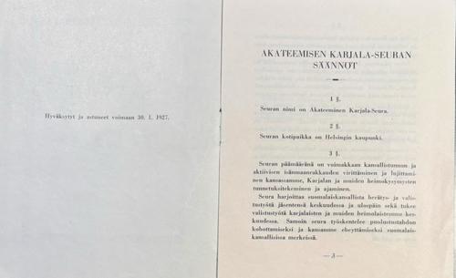 Akateemisen Karjala-Seuran sääntökirja vuodelta 1930