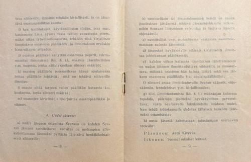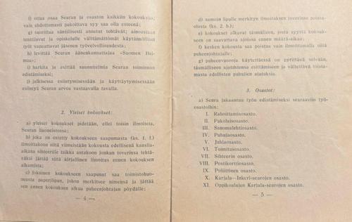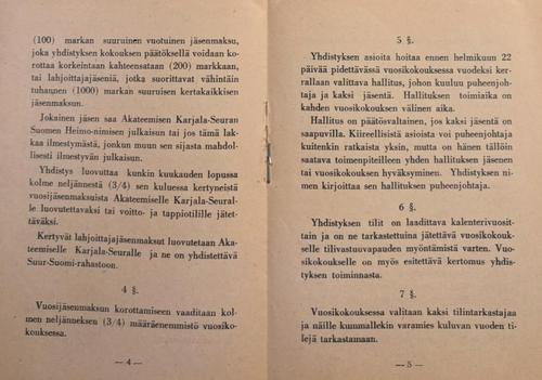 Akateemisen Karjala-Seuran Kannatusyhdistyksen sääntökirja vuodelta 1930